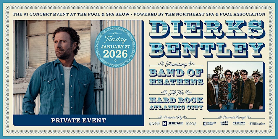 Reserve your tickets (HERE) to join Heritage Pool Supply Group for our Heritage Cares Charity Concert at the Pool & Spa show in Atlantic City! This year’s concert features multi-platinum country superstar Dierks Bentley as our headliner, with the soulful Americana sounds of Band of Heathens kicking off the evening.